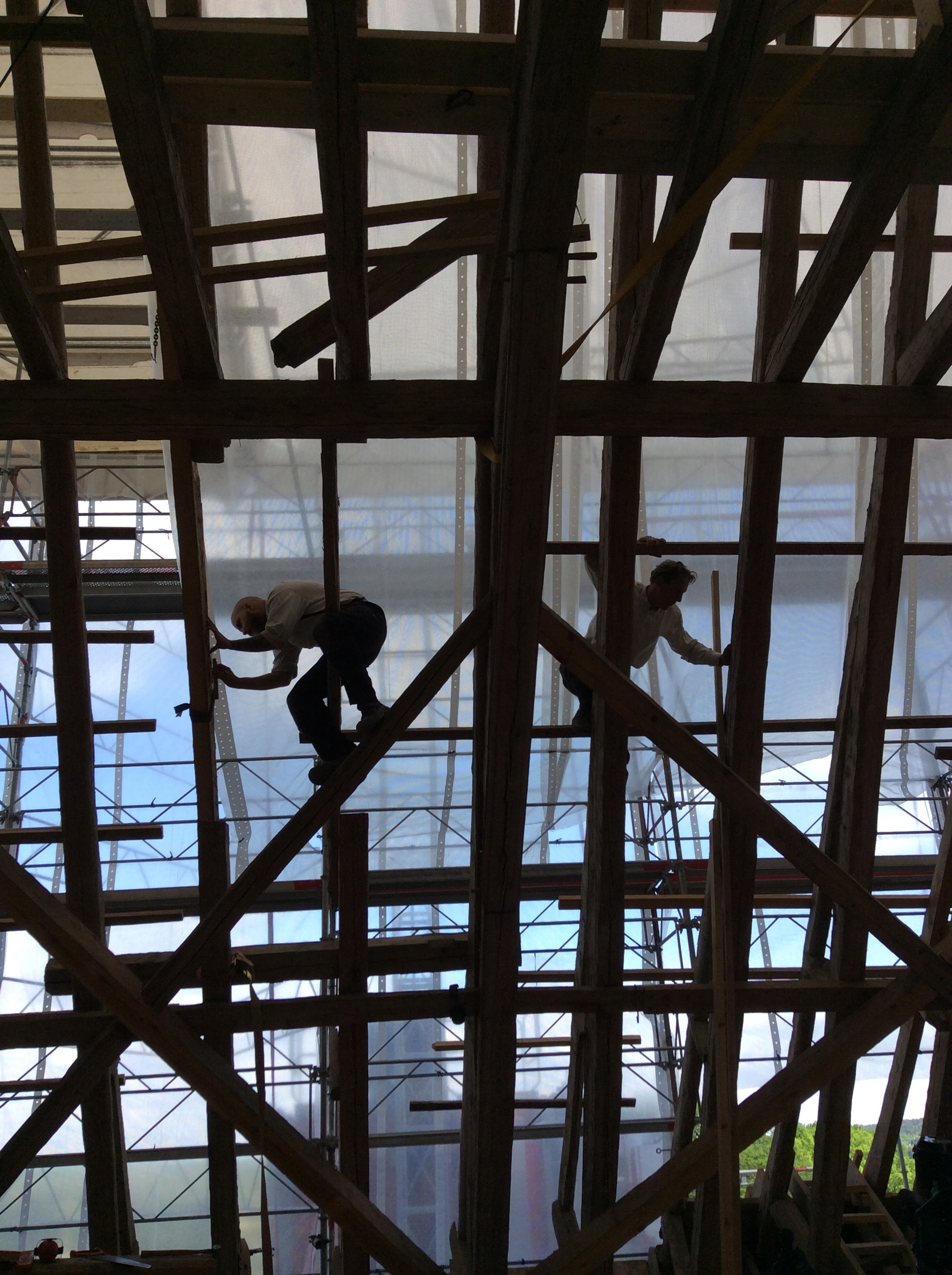 Nu är årets stora arbeten på Skoklosters slott färdiga. Taket på en fjärdedel av slottet är renoverat av flertalet duktiga specialister på byggnardsvårds från hela landet under ledning av Mattias Hallgren, slottstimmerman, Traditionsbärarna. Årets etapp var av samma omfattning som 2014 års arbeten, ca 1800 mantimmar fördelat på ca 12 hantverkare som endast arbetar med trä och järn.